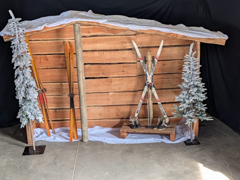 Een après ski decorwand is ideaal om een ruimte snel om te toveren in winterse sferen. Het vormt een mooie achtergrond en zorgt voor direct herkenbare themabeleving zonder dat je een compleet chalet hoeft te plaatsen.