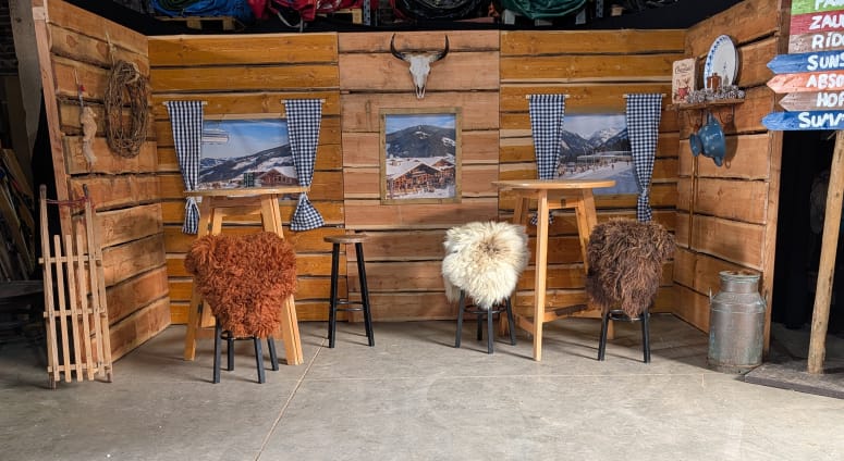Door de realistische uitstraling voelt het alsof je je in een echte Alpen skihut bevindt.