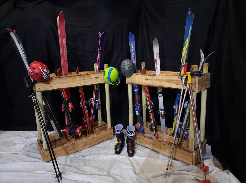 Het ski rek wordt vaak gecombineerd met andere decorstukken om een complete après ski setting te creëren.