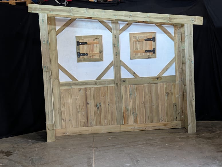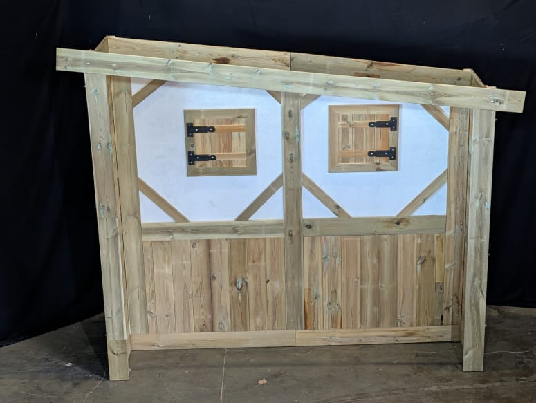 Het houten vakwerkhuisje is een decorstuk dat direct sfeer toevoegt aan een ruimte of evenemententerrein. Dankzij het karakteristieke ontwerp en de warme uitstraling past het perfect binnen verschillende thema’s.