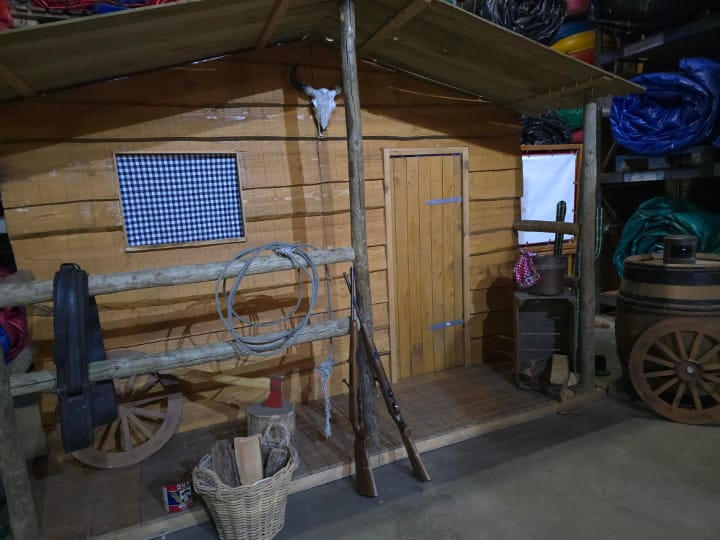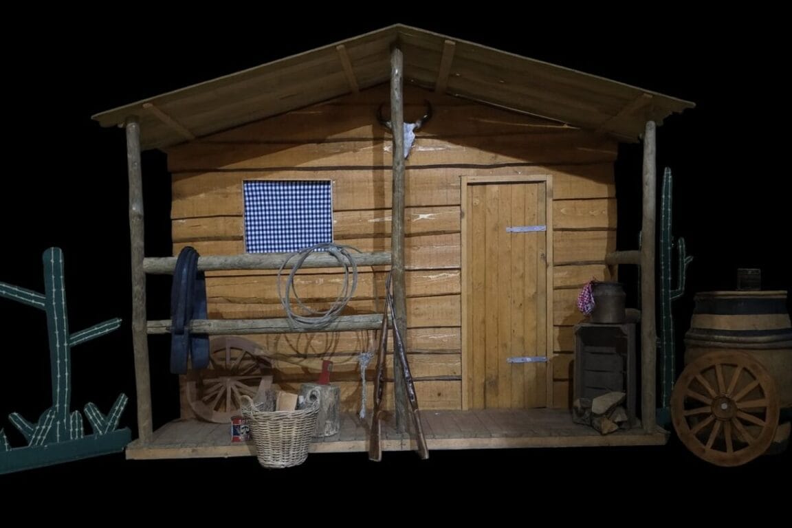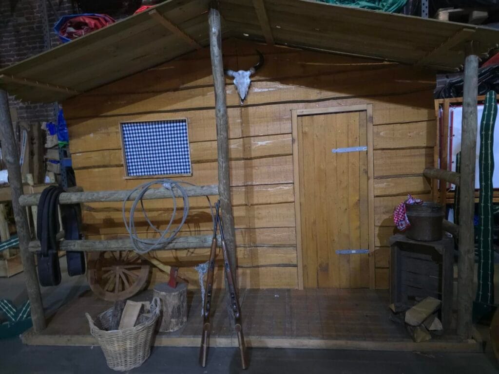 De houten cabin met typische western details geeft iedere ruimte een realistische western uitstraling.